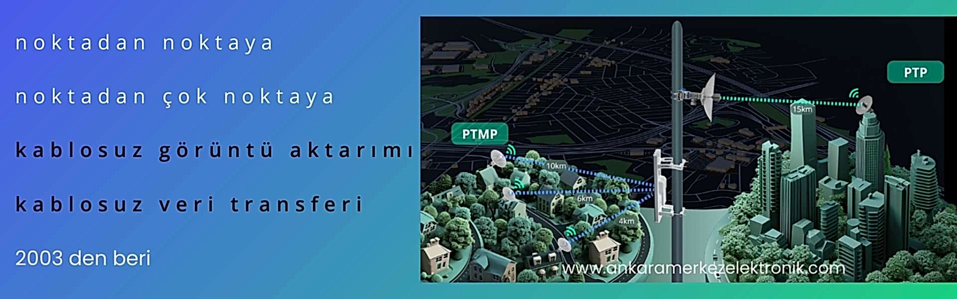 point to point. Kamera Görüntülerinin, verilerin kablosuz olarak sadece erişim noktası ve istemci olarak aktarılacağı, doğrusal hat üzerinde oldukları durumlarda kullanılır. Bu yapıda görüntü ve veriler uzak mesafelere taşınabilir. Bant genişlikleri yüksek olduğundan yüksek veri transferi yapılabiliriz. Bu yapıda tekrarlayıcı olarak point to multipoint veya point to point ekleyerek kullanırız.